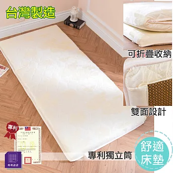 【eyah宜雅】臺灣製可折疊專利獨立筒雙面冬夏兩用記憶三折床墊-雙人5尺米黃緹花